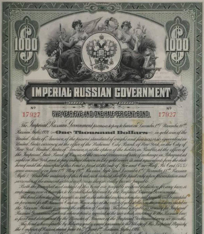 "Amerykańska firma Noble w końcu pozwała Rosję, domagając się 225 miliardów dolarów z tytułu niezapłaconych obligacji carskich z 1916 roku.