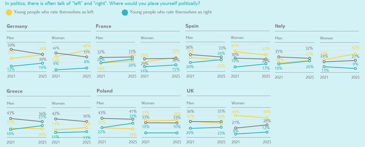 "32% młodych mężczyzn w Polsce utożsamia się "z prawicą". To najwyższy wynik wśród badanych państw Europy.