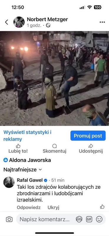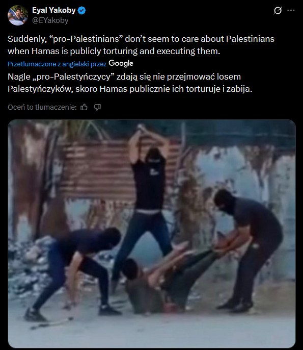 Są nagrania rzekomo hamasowców wjeżdżających na pikapach do jakichś dzielnic, ludność wiwatuje, za moment znowu będzie płacz "a nas za co".