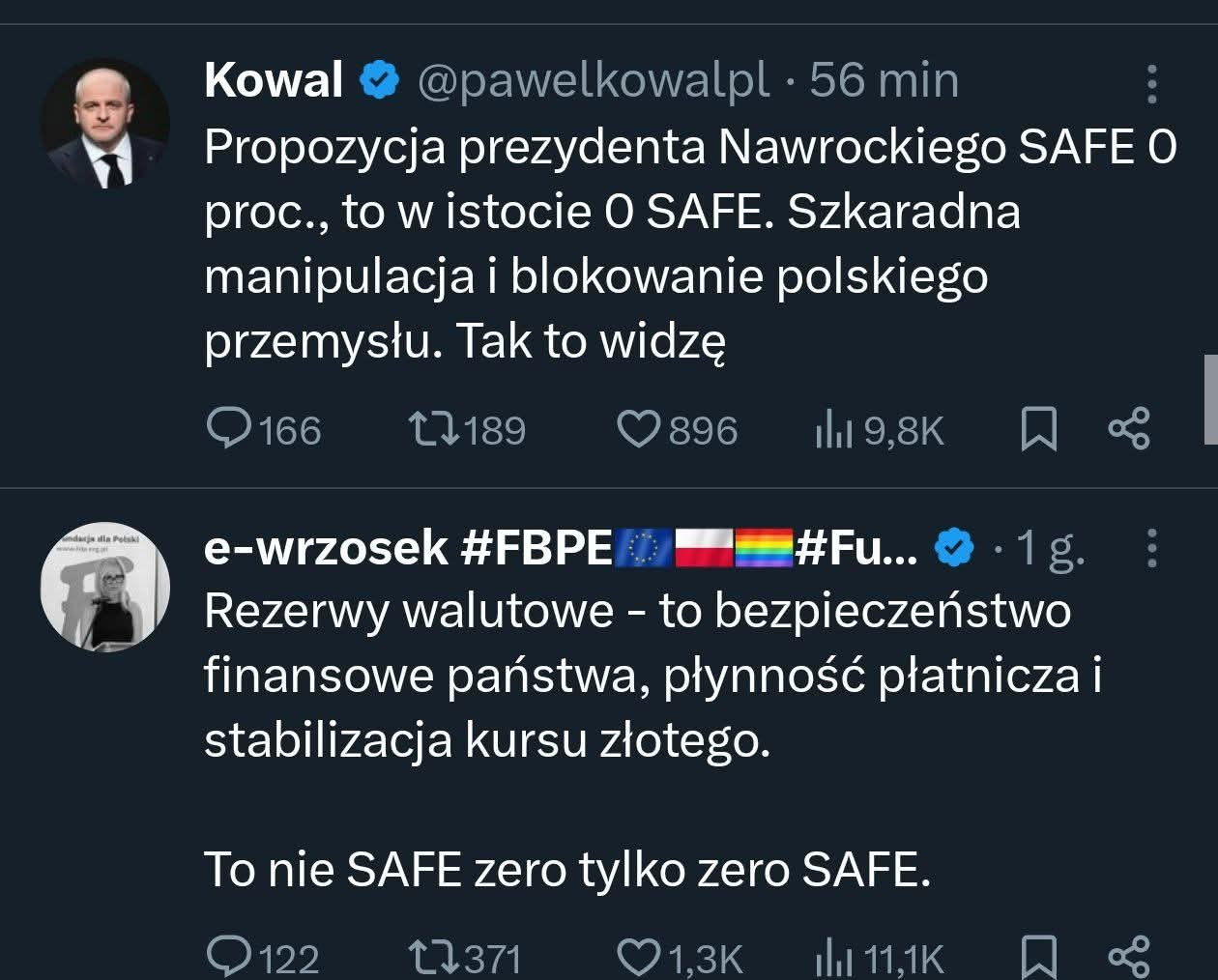 Podoba mi się ten pomysł. W połączeniu z wzrostami cen paliw da to piękny wynik w postaci inflacji 20 % lub większej. Z punktu widzenia rządu jest jednak najrozsądniej wziąć teraz SAFE a po wyborach w 2027 rząd obecnej opozycji będzie mógł wcielić w życie pomysł pana prezydenta. Wtedy pieniądze na waloryzację emerytur będzie musiał znaleźć kolejny rząd.