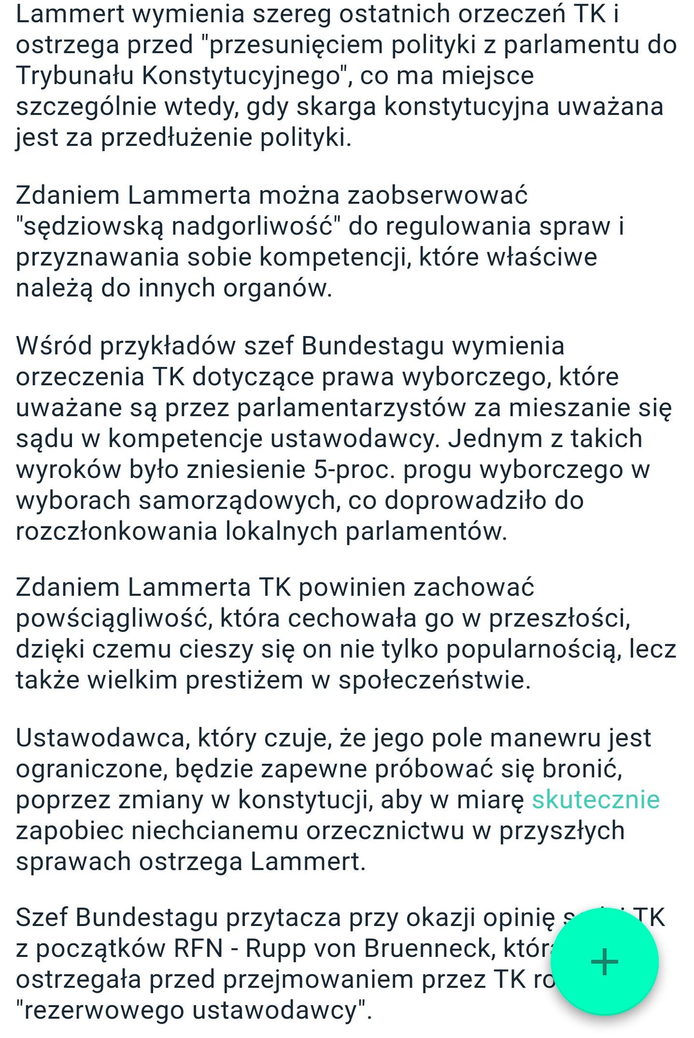 Przewodniczący Bundstagu wzywa niemiecki Trybunał Konstytucyjny do powściągliwości i nie wchodzenia w drogę ustawodawcy. Tu fragment: