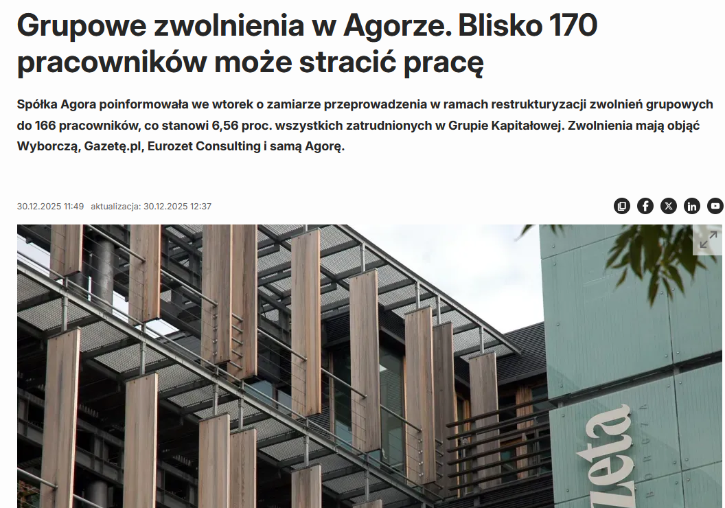 "Aleksandra Szyłło, dziennikarka "Gazety Wyborczej" i nowo wybrana przewodnicząca związku zawodowego "Solidarność" w Agorze, ujawniła, że część pracowników redakcji dorabia w McDonaldzie, jeździ nocami jako kierowca Ubera lub szuka dodatkowych zajęć w salonach SPA. Wszystko z powodu trudnej sytuacji finansowej. Powiedziała to tak, jakby się wstydziła. Z takim żalem w głosie."