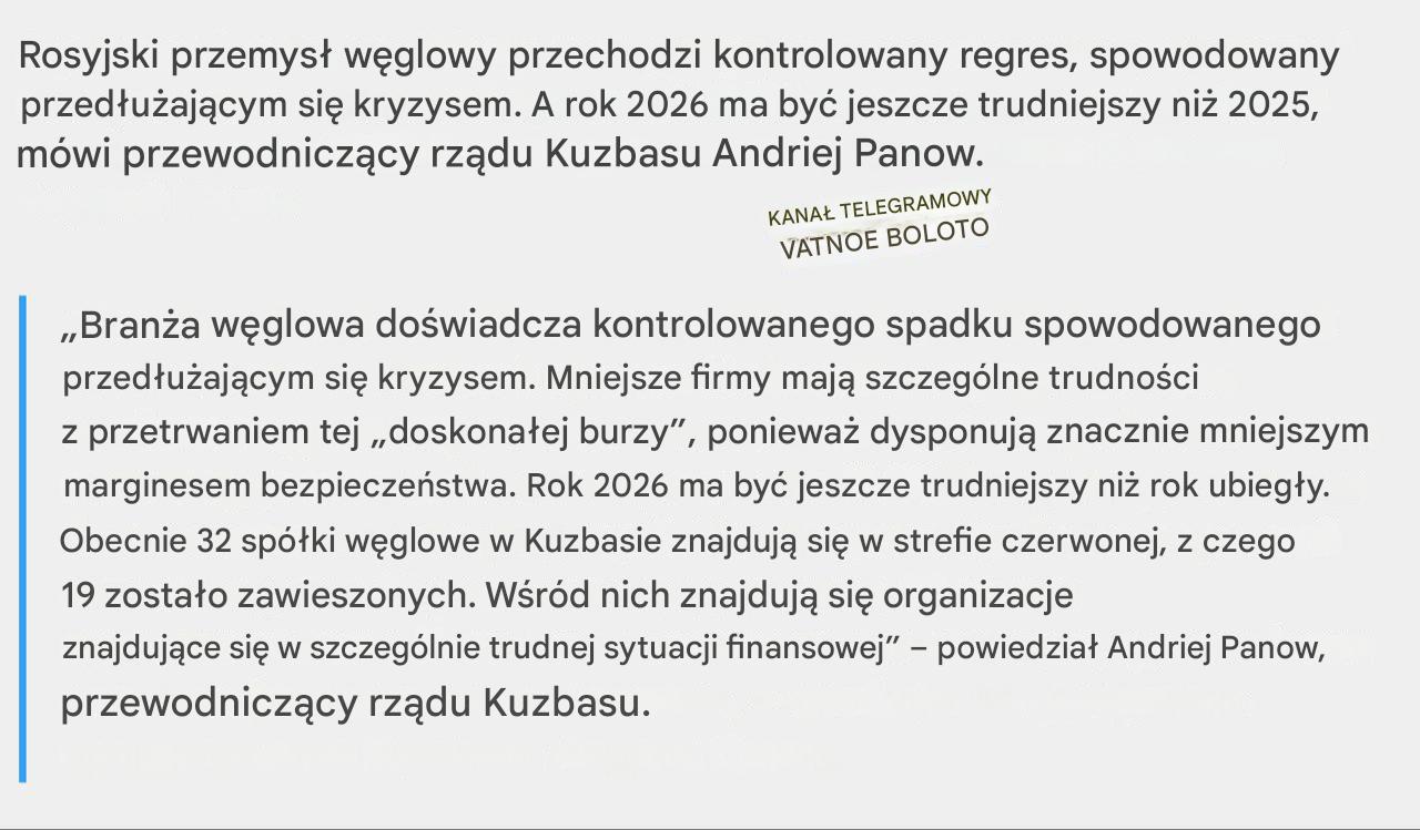 Rosjanie podali, że w grudniu 2025 cena ropy Urals spadła w uśrednieniu do 39,18 dolara za baryłke, cena transakcyjna można powiedzieć, nie ofertowa. W listopadzie to było 44,87 dolara. Jest to powrót do poziomu z 2004 roku.