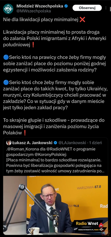 Ciekawa wymiana zdań, w komentarzach pojawia się nie tak rzadko zestawienie "tylko ruch narodowy, młodzież wszechpolska i pis, brauniści i korwiniści to zwierzęta takie same jak fajnopolacy".