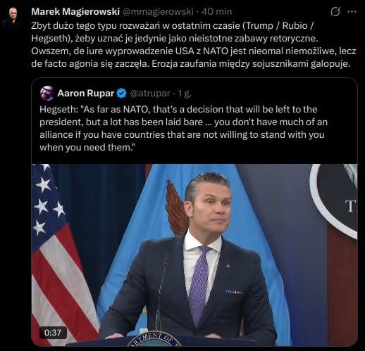 Magierowski ostatnio trochę histeryzuje ale kronikarsko odnotujmy - czy NATO nadal istnieje, jeżeli z jednej strony ma operować powyżej zwrotnika raka, z drugiej - kraje europejskie nie pozwoliły USA na:
