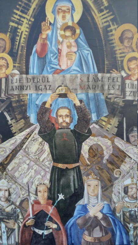Na ile pamiętam, to dostał koronę od Papieża. Tzn były wyścigi z Piastami, kto jest bardziej pobożny. Zwyciężył Stefan wprowadzając radykalne prokatolickie rozwiązania i budując okazałe opactwo (Panonhalmę właśnie) i pierwsza koronacja odbyła się na Węgrzech.