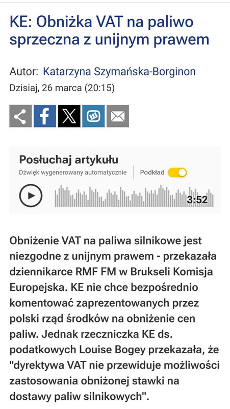 No tak, ale KE przybywa z odsieczą tylko na płaszczyźnie VAT, można zatem nieco więcej obniżyć akcyzę.