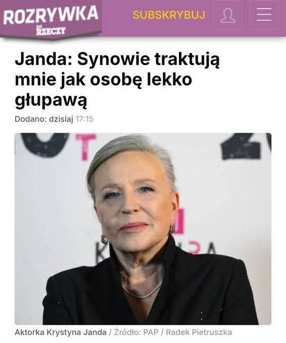 ...jakiś atak Jandy, gdzieś widziałem okładkę, na której się chwali, że "myśli dużymi literami", pewnie już niedowidzi niebożę