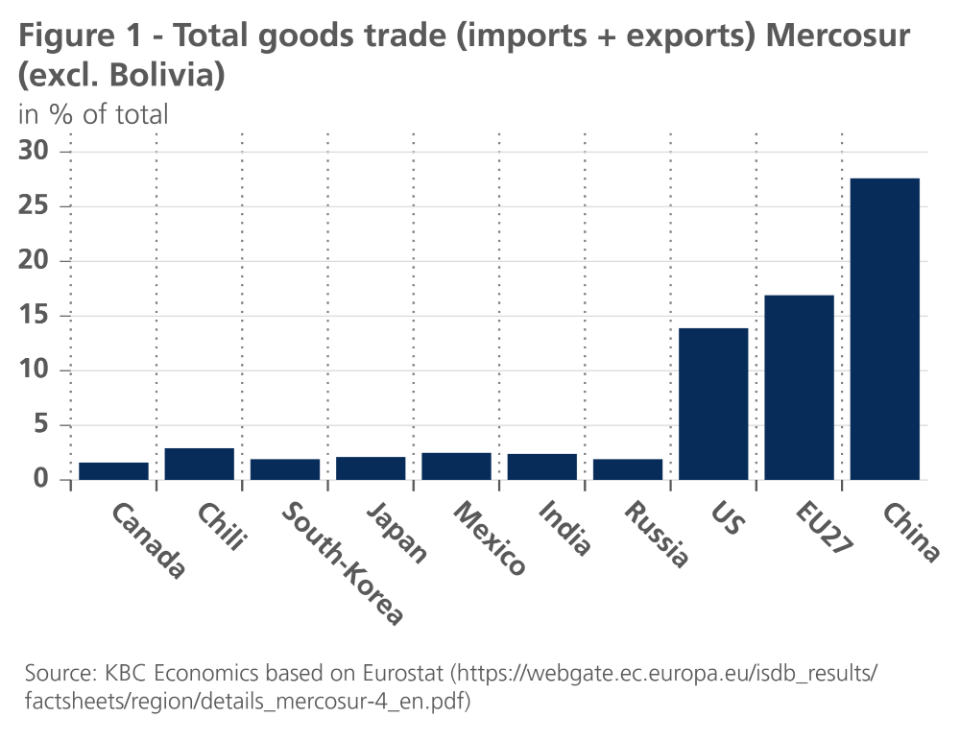 Wyborcy KO mówią, że w umowie zapisane są limity, że max. 10% czegoś tam, że Europa skorzysta bo jest po Chinach największą wymianę z państwami Mercosur, pokazują taki wykres.