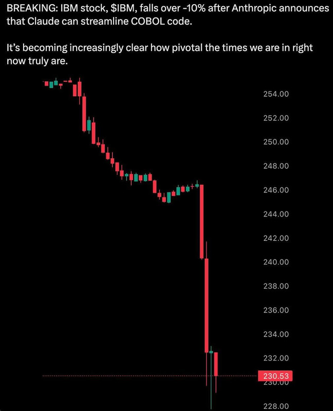 Akcje IBM spadły o 13%. Powód jest prosty: IBM zarabia na tym, że COBOL jest trudny. Firma trzyma klientów na swoich mainframe’ach, sprzedaje modernizację przez watsonx, ale pilnuje, żeby efekt końcowy wciąż działał na jej sprzęcie. Dyrektor finansowy chwalił się mnożnikiem przychodów 3-4x z każdego klienta mainframe. Anthropic nie proponuje modernizacji – proponuje ucieczkę z całego ekosystemu.