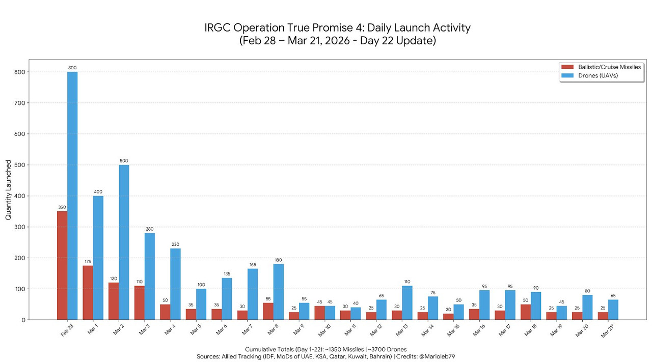 To nie wygląda na wyczerpanie się arsenału lub skuteczne masowe niszczenie wyrzutni a na...oszczędne gospodarowanie rakietami w przedłużającym się konflikcie przez Iran.