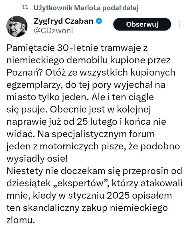 tak na marginesie o starych niemieckich tramwajach kupowanych dla Poznania. Wiadomo, ze kupione bez przetargu przez nie wiadomo kogo. Wiadomo, że w Niemczech. Dorzucą jeszcze dwie informacje